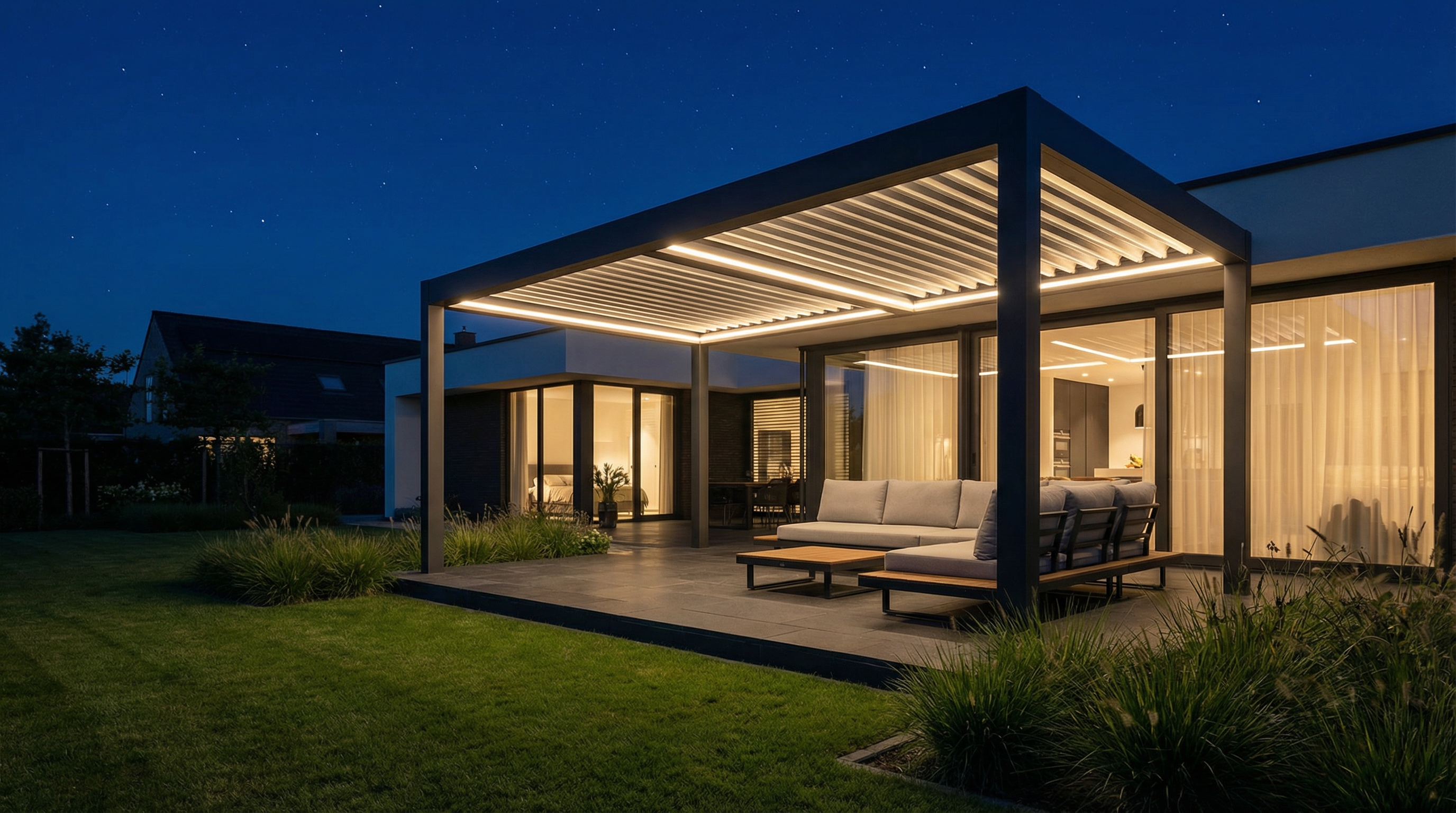 Mit integrierter LED-Beleuchtung wird Ihre Terrasse zum stimmungsvollen Outdoor-Wohnzimmer – auch nach Sonnenuntergang. Perfekt für lange Sommerabende in Soltau oder gemütliche Herbstabende mit Freunden und Familie.