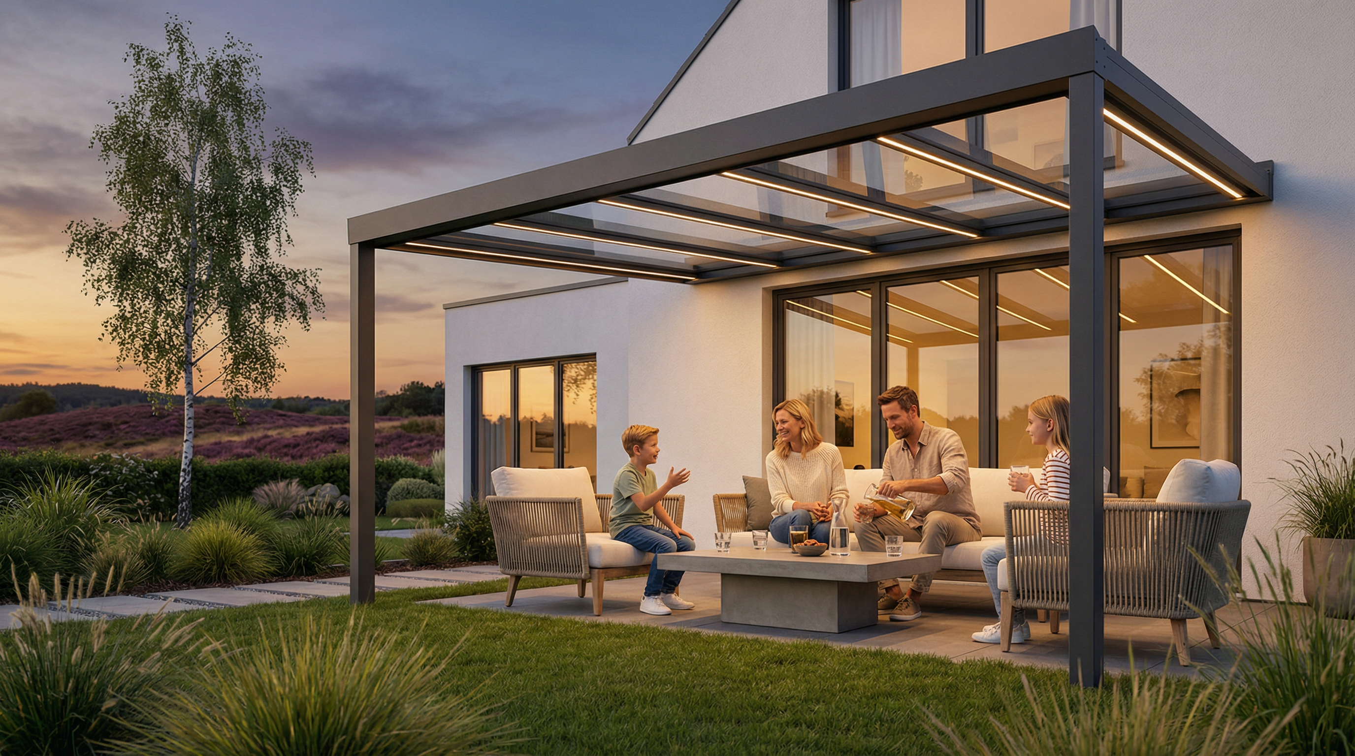 Ein Terrassendach in Soltau bedeutet mehr als nur Wetterschutz. Es ist die Verlängerung Ihres Wohnzimmers in die Natur der Lüneburger Heide – ein Ort für Familienabende, entspannte Morgen und gesellige Grillpartys, unabhängig vom Wetter.
